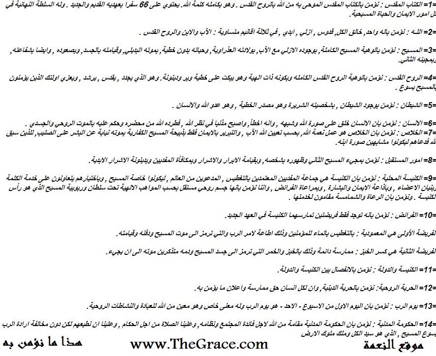 =1= الكتاب المقدس : نؤمن بالكتاب المقدس الموحى به من الله بالروح القدس . وهو